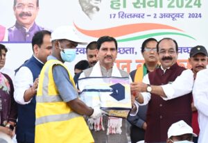 उप मुख्यमंत्री श्री अरुण साव तथा केंद्रीय आवासन और शहरी कार्य राज्य मंत्री श्री तोखन साहू ने सफाई कर्मचारियों और स्वच्छता दीदियों को कार्यक्रम में ईएसआईसी कॉर्ड और पीपीई किट प्रदान किया। रायपुर के कलेक्टर डॉ. गौरव कुमार सिंह, जोन अध्यक्ष डॉ. प्रमोद साहू और पार्षद श्री रोहित साहू सहित अनेक गणमान्य नागरिक तथा रायपुर नगर निगम के अधिकारी-कर्मचारी बड़ी संख्या में कार्यक्रम में मौजूद थे।