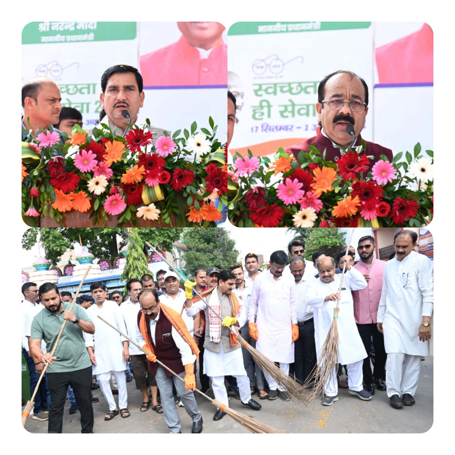 उप मुख्यमंत्री श्री अरुण साव और केंद्रीय राज्य मंत्री श्री तोखन साहू ने 'स्वच्छता ही सेवा' पखवाड़ा में किया श्रमदान