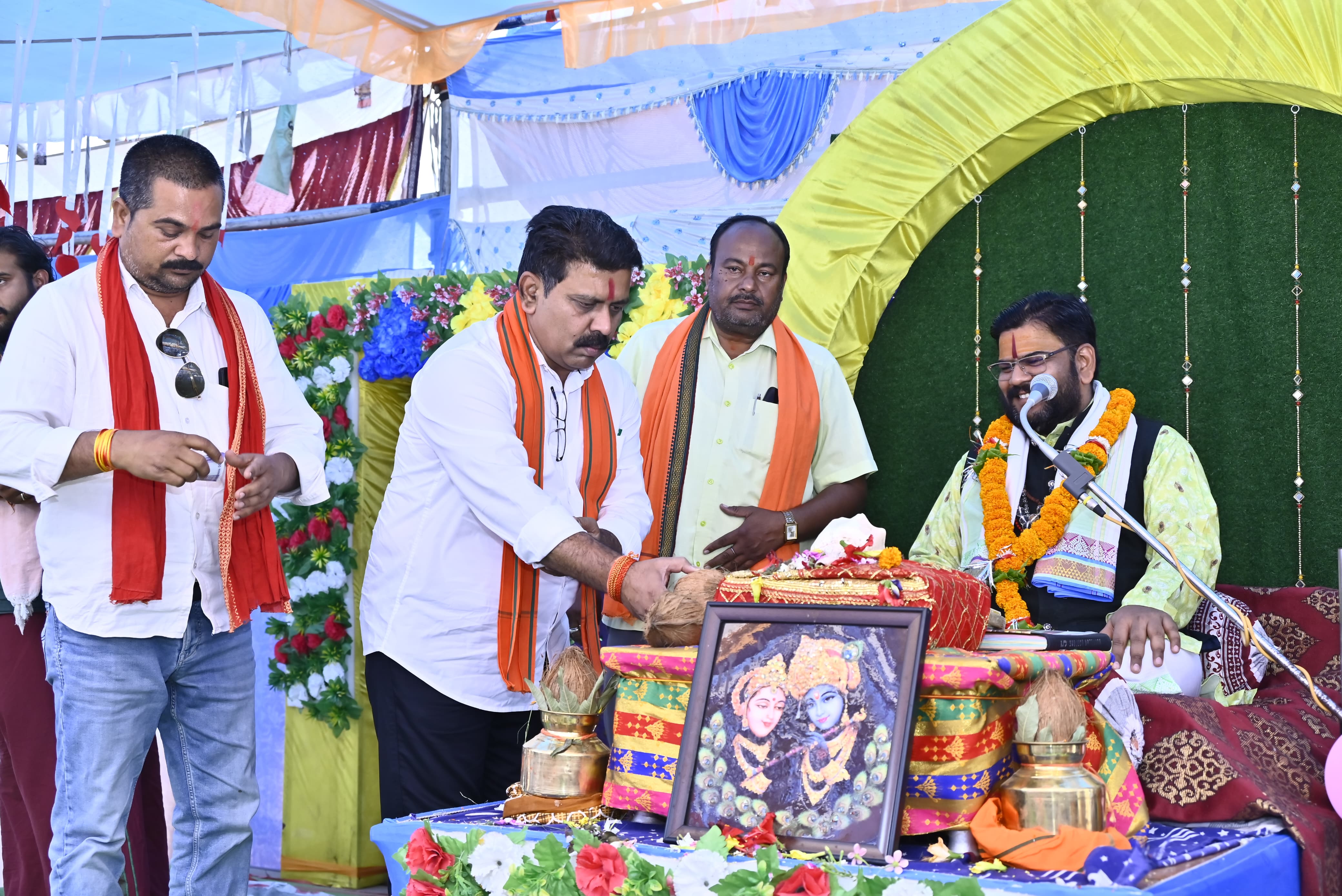 उपमुख्यमंत्री विजय शर्मा ग्राम लिमो जुनवानी में श्रीमद् भागवत कथा में शामिल हुए