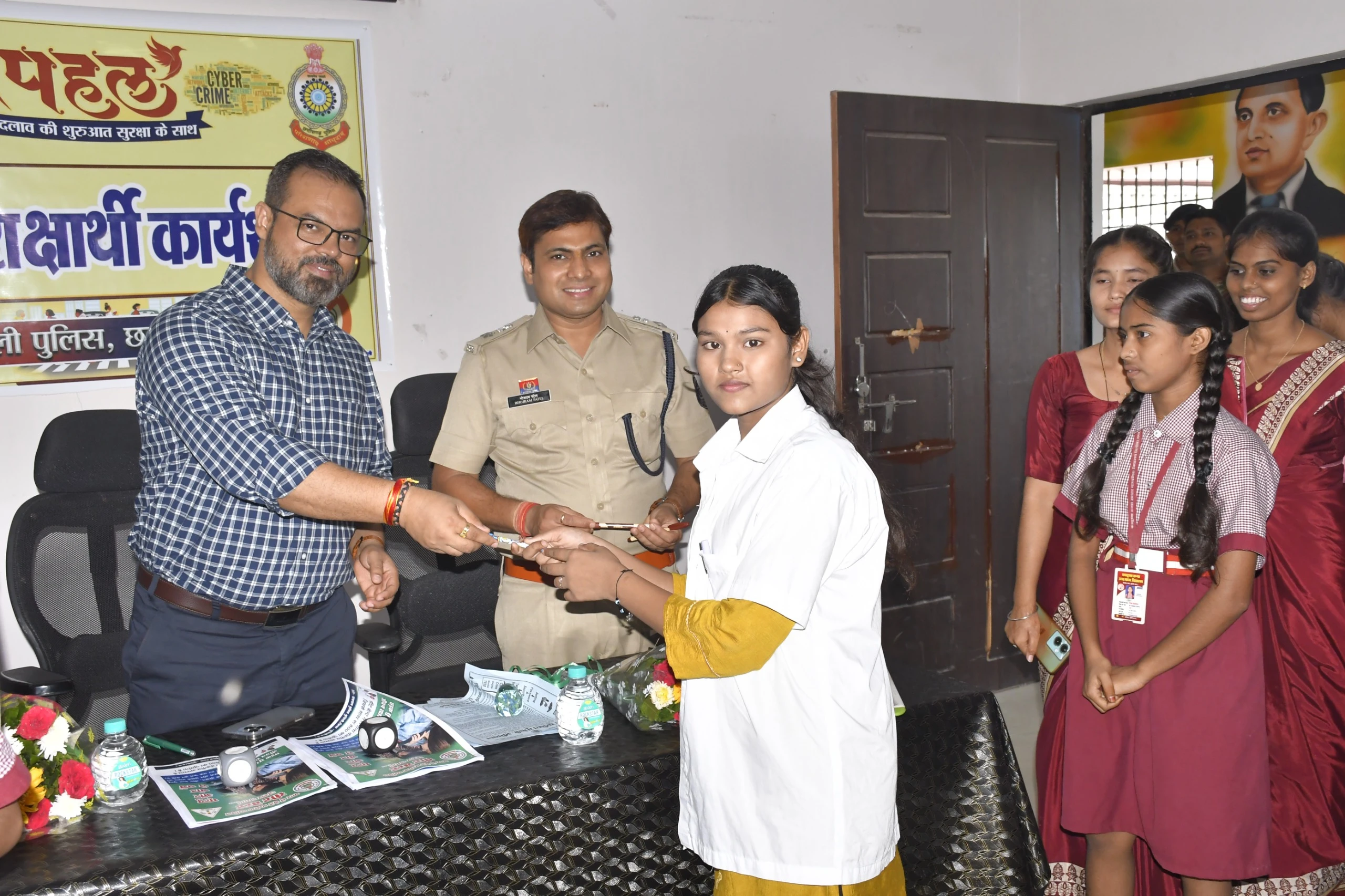 पुलिस अधीक्षक श्री भोजराम पटेल ने कहा कि ‘‘पहल’’ कार्यक्रम के अंतर्गत विभिन्न स्कूलों के विद्यार्थियों को चयनित कर उन्हें साइबर सुरक्षा, नशा मुक्ति और अनुशासन के महत्व से परिचित कराया जा रहा है। उन्होंने कहा कि विद्यार्थियों को मोबाइल के दुरुपयोग और गलत संगत से बचना चाहिए तथा कड़ी मेहनत और लगन से अपने भविष्य को संवारना चाहिए। उन्होंने बताया कि चयनित विद्यार्थियों को स्कूल का प्रतिनिधि बनाकर अनुशासन, स्वच्छता और नैतिक मूल्यों के लिए प्रेरित किया जाएगा। यह अनुभव उनके सम्पूर्ण जीवन में उपयोगी सिद्ध होगा। इस दौरान कलेक्टर और पुलिस अधीक्षक को विद्यार्थियांे ने रक्षासूत्र भी बांधा। कार्यशाला के समापन में छात्राओं की सृजनात्मक अभिव्यक्ति और सामाजिक समझ को सराहते हुए कलेक्टर एवं एसपी ने प्रेरणा स्वरूप पेन भेंट कर सम्मानित किया।